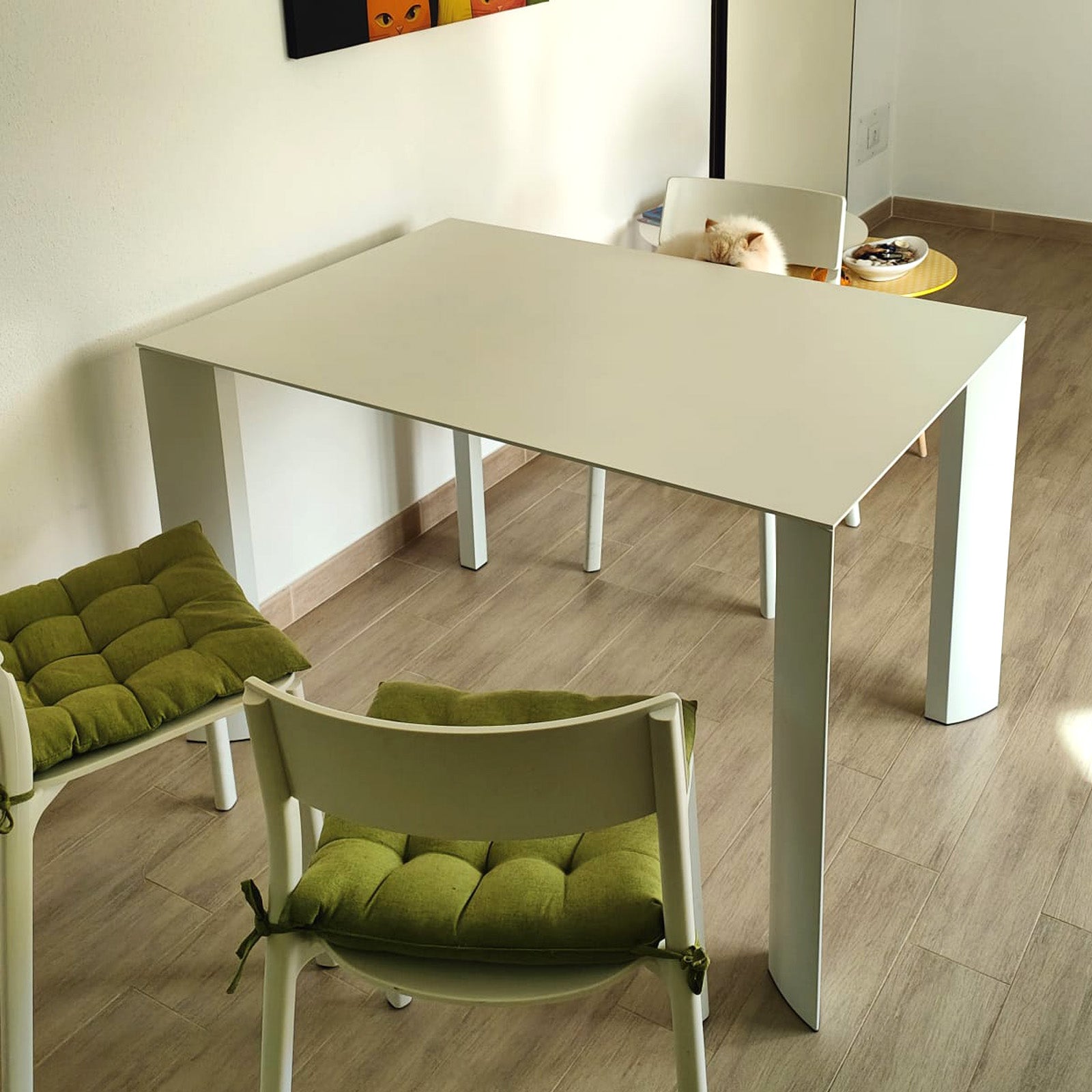 Il piano “alveolare” permette una dissipazione ottimale del calore, rendendo il tavolo ideale anche per i pasti caldi. La pulizia è semplice: basta un panno umido e un detergente neutro per mantenerlo sempre perfetto.
