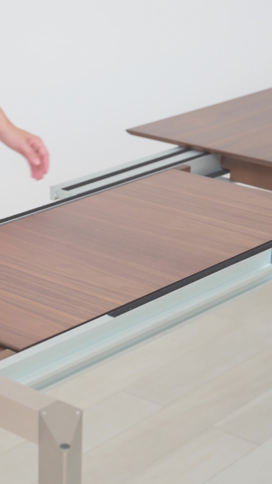 Il tavolo si estende tramite l’aggiunta di prolunghe, da conservare comodamente all’interno del tavolo quando non vengono utilizzate.
