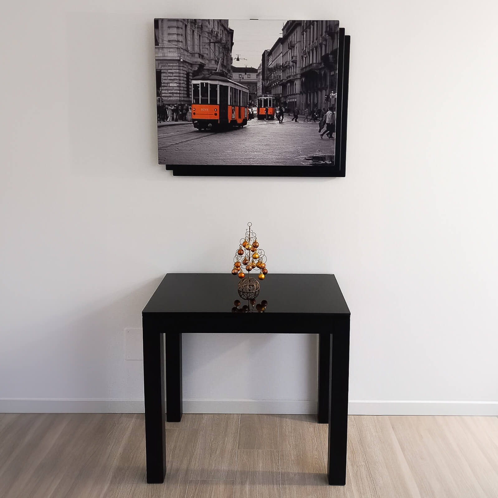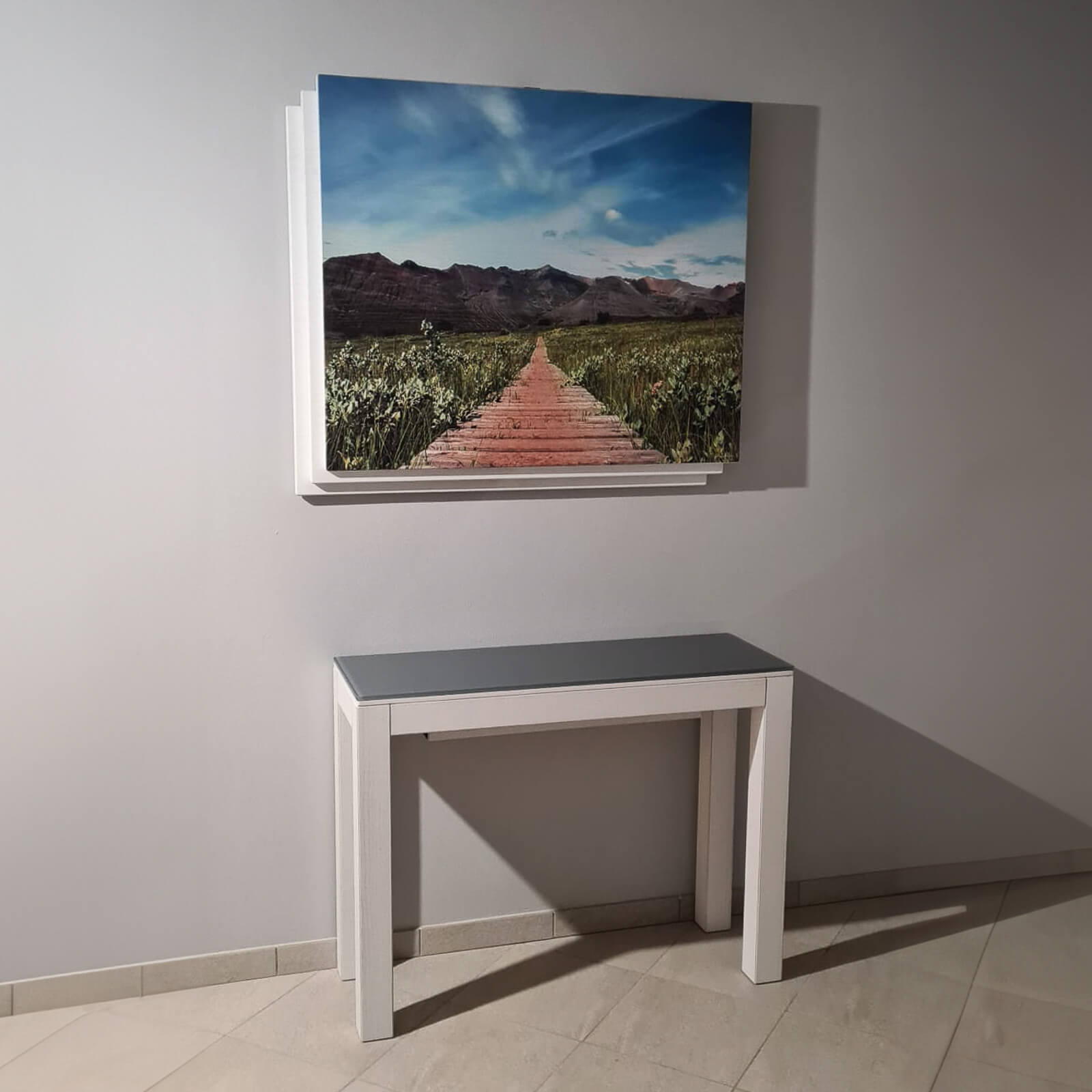 - Apertura Modulare: La consolle si apre in modo modulare con prolunghe esterne, consentendo di regolare la lunghezza in base alle necessità. Quando non utilizzate, le prolunghe possono essere appese al muro tramite il supporto dedicato, diventando un elegante elemento decorativo.