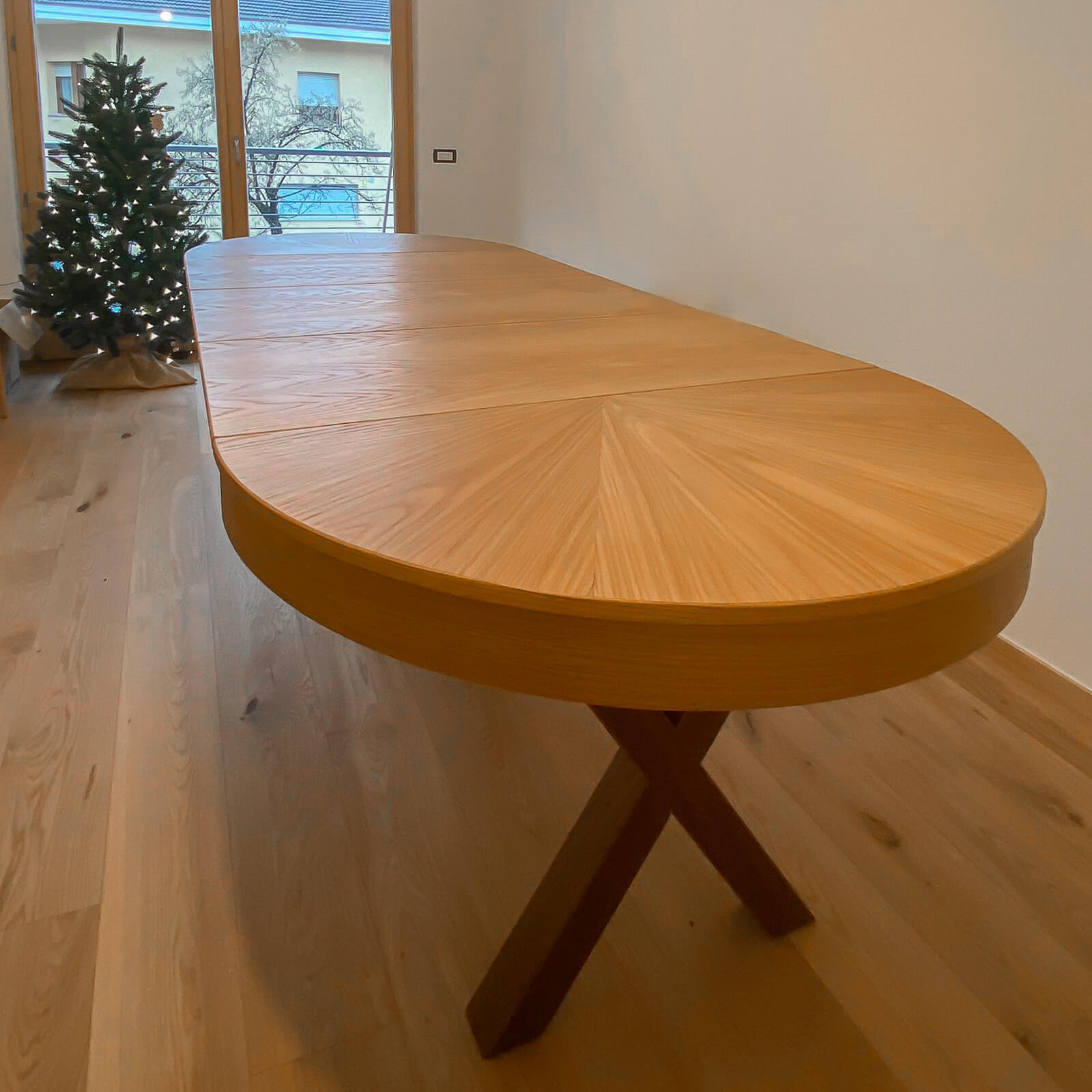 Tavolo da pranzo ovale allungabile, da 6 a 14 posti.