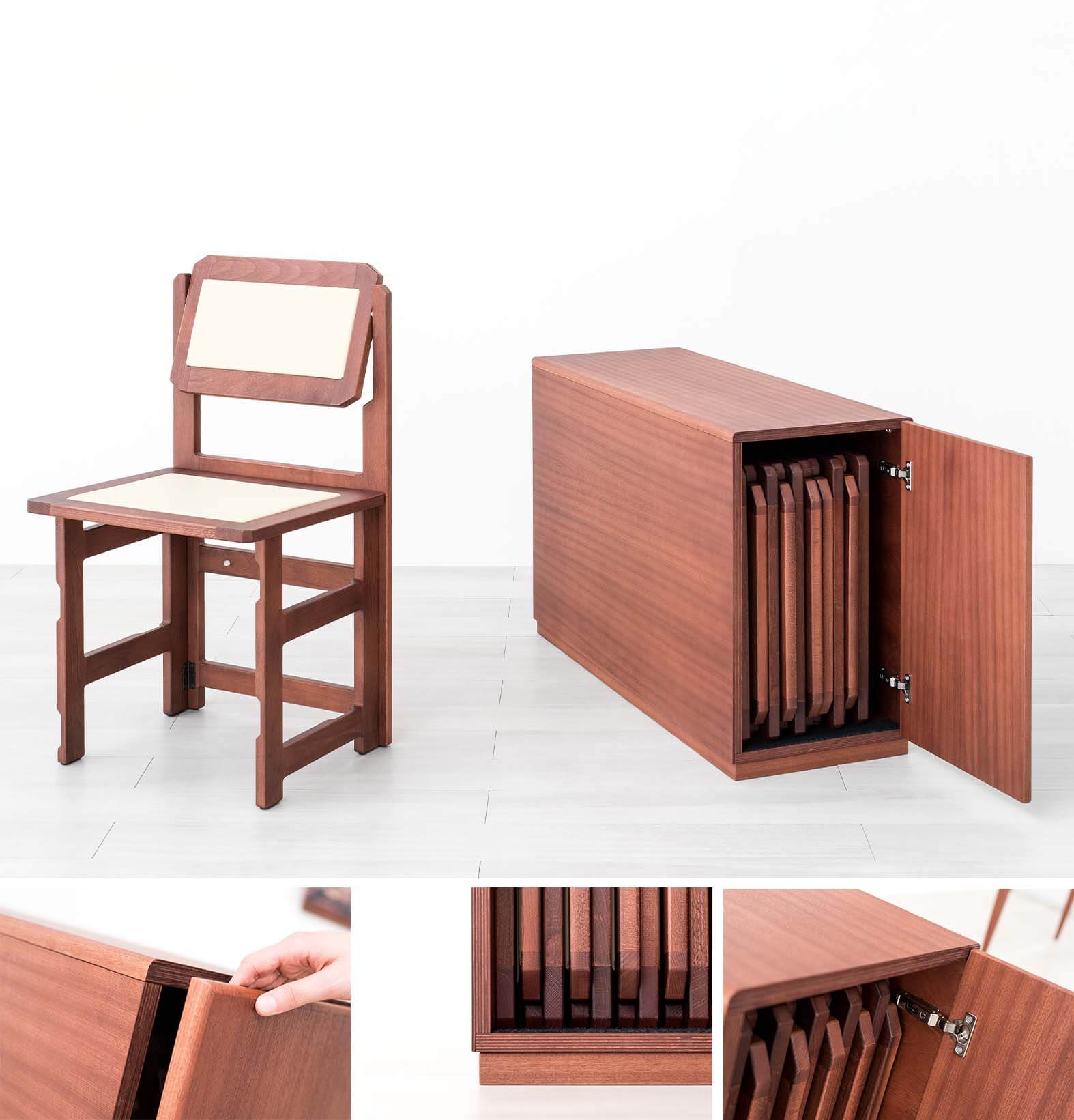 We like to think big: not only do we offer you a wide range of transformable and space-saving chairs, but we also give you the right idea to store them and take up as little space as possible! Choose among the many available finishes the one that's right for you: integrate the high-quality folding chairs container cabinet with the already existing furniture in your home and make it a practical sofa armrest or storage unit.